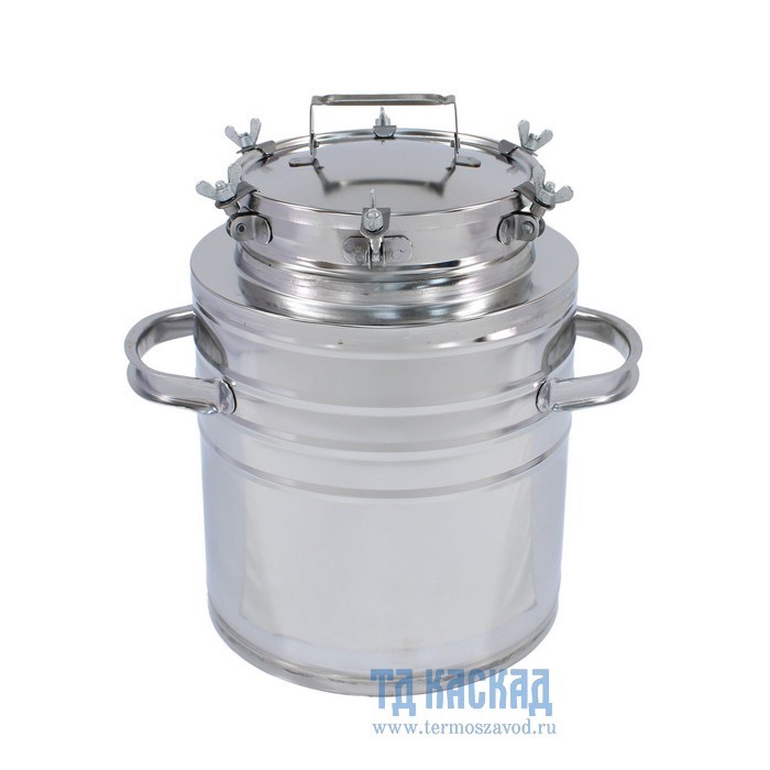 Бидон БД-25 имеет широкое горло. Крышка оснащена прокладкой из пищевой резины и затяжным механизмом, что гарантирует 100% герметичность. На корпусе есть ручки для комфортной переноски.