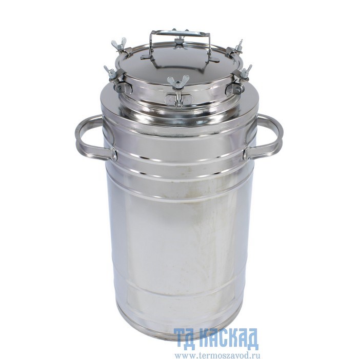 Бидон БД-40 имеет широкое горло. Крышка оснащена прокладкой из пищевой резины и затяжным механизмом, что гарантирует 100% герметичность. На корпусе есть ручки для комфортной переноски.